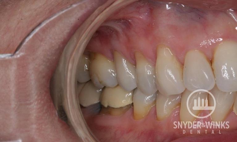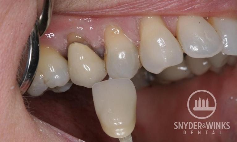 Not only do we spend time matching front teeth for crowns but also the back teeth. Check out this old metal crown replaced with a new porcelain crown.